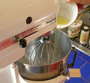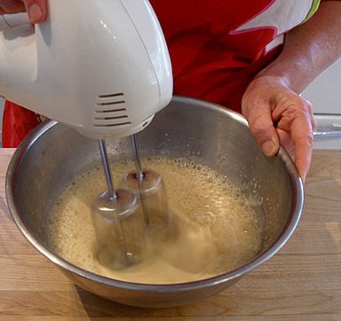 1. Using a handheld electric mixer start at low speed until the mixture becomes frothy.